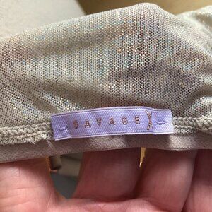 Inspired by the iconic gowns of the '70s, our best-selling Savage silhouettes have been updated with elegant sheer mesh. The Gathered Mesh Strappy Bralette features sheer mesh cups and Savage X logo front closure.
