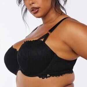 Savage x Fenty Black Lace Not Sorry Lightly Lined Balconette Bra Size 32C