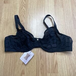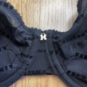 New with tags unlined flocked logo demi bra from Savage X Fenty, size 40C. This unlined bra is made from their flocked logo fabric and features a rose gold tone X charm at center front. Features: