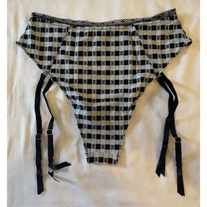 Savage x Fenty Gingham Print Cheeky High Waist Garter Panties Size Small NEW
