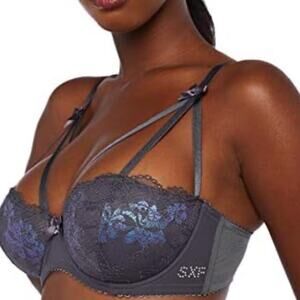 Savage x Fenty Living in the Clouds Demi Bra 40XC Iridescent Caged Lace Sexy Bow