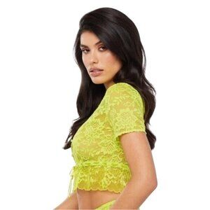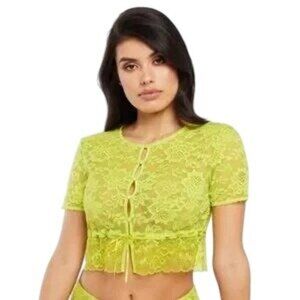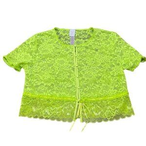 Savage x Fenty Neon Green Lace Button Down Crop Top