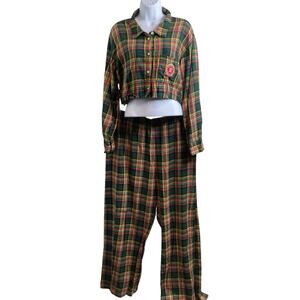 Savage x Fenty Womens Two Piece Plaid Pajamas Set Size 1X Cropped Top Edgy Comf