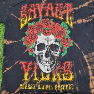 Savage-Vines Skull Rose Shirt Womens Small 18x22 Bleached Black