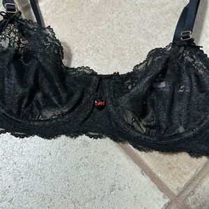 Savage X Fenty Black Candy Hearts Unlined Lace Balconette Bra