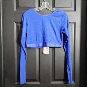 Keep it cozy in our Savage X Cotton Jersey Crop Top. This cropped t-shirt features a scooped open back, a scalloped logo elastic underband, and long sleeves.
