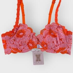 SavagexFenty Perfect Poppies Unlined Lace Demi Bra 38D Pink Orange Festival Top