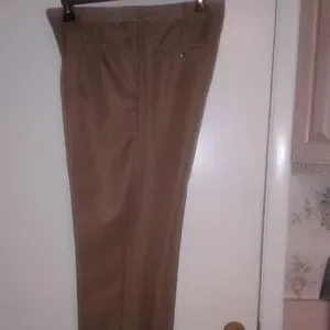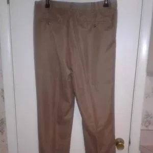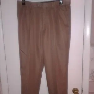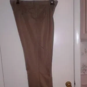 khaki savanes. 2 pairs. 36 by 30. 100% polyester pleated and cuffed. machine washable .two pairs for 5 dollars.