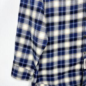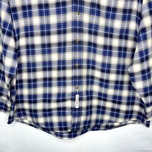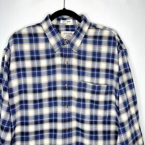 Savane Blue Plaid Button Down Shirt Long Sleeve No Wrinkles Size Large Long