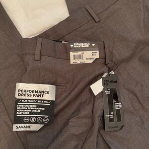 Keeping your look sharp all day is easy with these men's dress pants from Savane. The lightweight twill gabardine trousers feature a permanent crease with no iron performance. Stretch in the material and an expandable waistband offer total comfort and a greater range of motion to take you through your day.