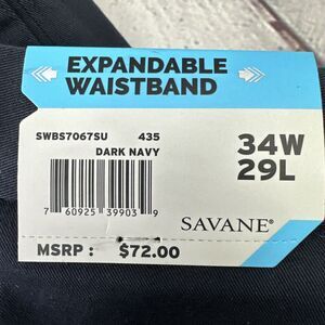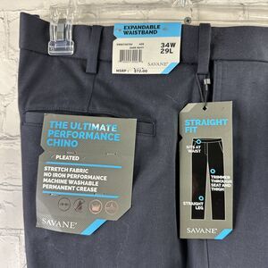Savane Mens The Ultimate Performance Chino Navy 34W / 29L Pleated Pants NWT