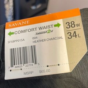 Savane Microfiber Performance No Iron Comfort Waist Heather Charcoal Pants 38x34. New with tags! Cuffed hem. Zipper and button closure. Pleated Front. See pictures for approximate measurements. Dress pants. Office. Business. Trousers.