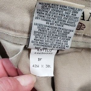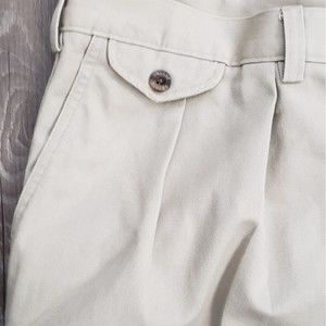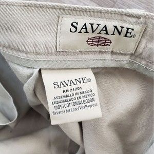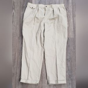 Savane light tan casual pants with pleated front and cuffed hem, front and back pockets, size 42/30