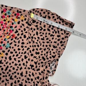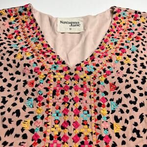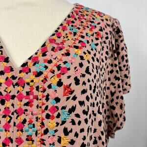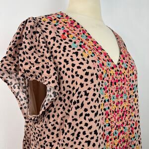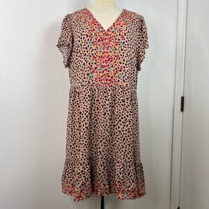 Savanna Jane Animal Print Embroidered Boho Shirt Dress Ruffle Hem Casual Size 1X