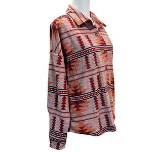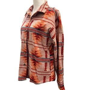 Savanna Jane Aztec Print Corduroy Shacket Size Small Pockets Orange Red Blue