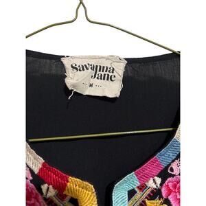 Savanna Jane Black Blouse with Vibrant Floral Embroidery