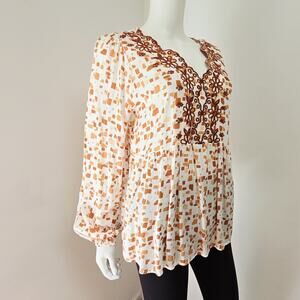 Savanna Jane embroidered floral and geometric printed blouse/top, western-boho style (no stretch)