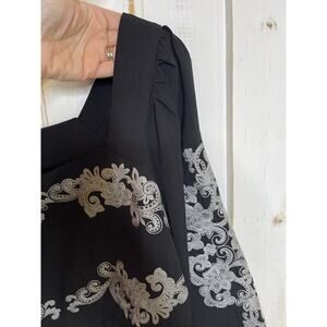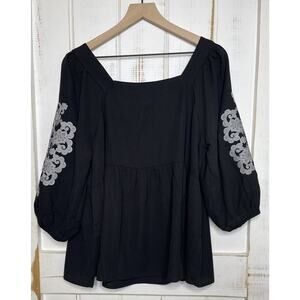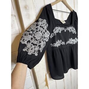 Savanna Jane Boho Blouse Long Sleeve Floral Embroidered Peplum Puff Sleeve Top Large