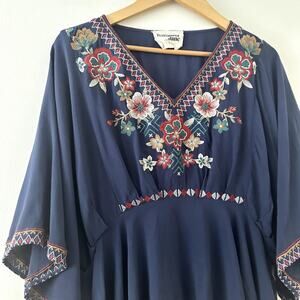 Savanna Jane Boho Floral Embroidered V Neck Top Sz S
