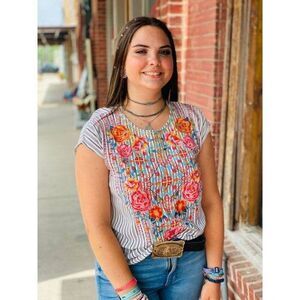 Savanna Jane By Your Side Floral Embroidered Stripe Blouse