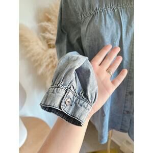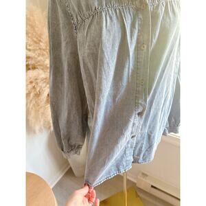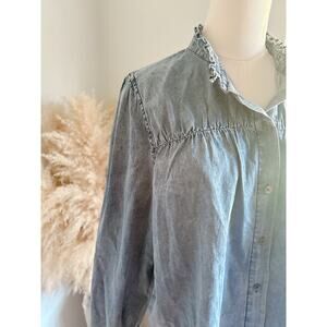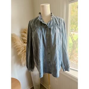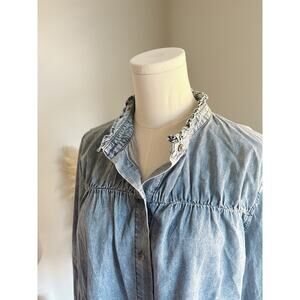 Savanna Jane Chambray Ruffle Neck Button Up Peasant Blouse Women’s Medium