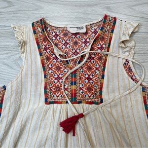 Savanna Jane Cotton Linen Embroidered Boho Colorful Blouse Sleeveless Size S
