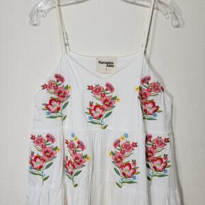 Savanna Jane Dress S White Embroidered Floral Lined Adjustable Strap Summer