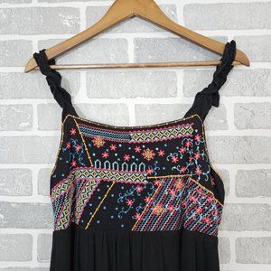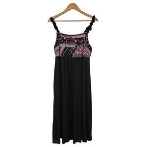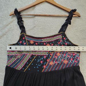 Savanna Jane Womens Embroidered Tank Dress Size Large Black Ruffle Strap Boho