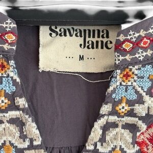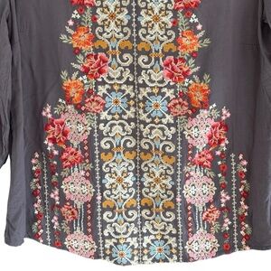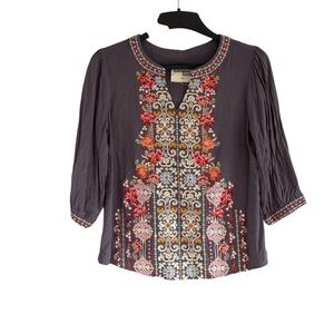 Savanna Jane Embroidered Floral Gray Top Size Medium