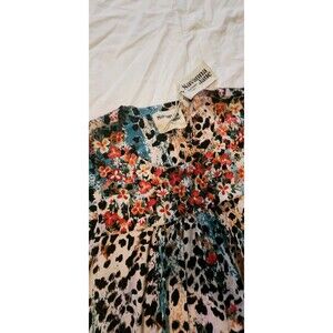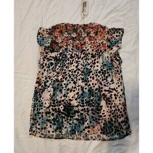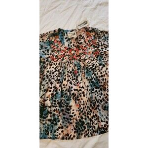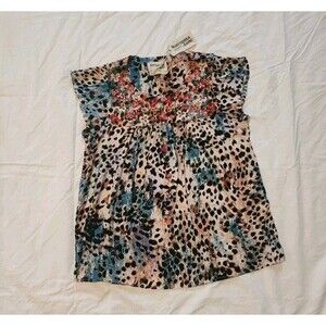 Savanna Jane Embroidered Floral Peasant Top Shirtskeeve Animal Print Boho L