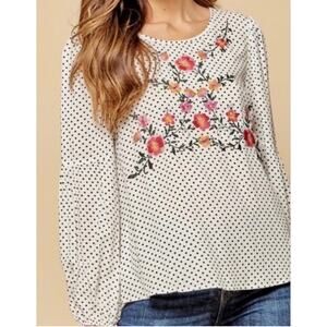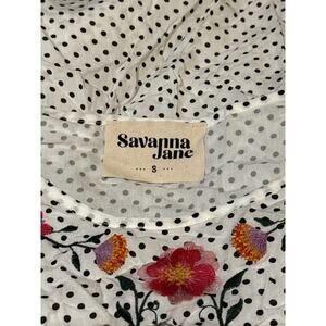 Savanna Jane Embroidered Floral Polka Dot Top S NWOT