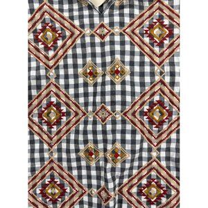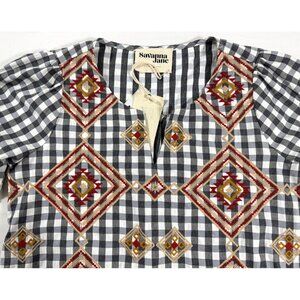 Savanna Jane Embroidered Gingham Blouse S NWT Boho Western Aztec Soft Geometric