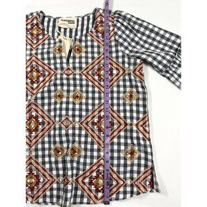 Savanna Jane Embroidered Gingham Blouse Sz S NWT Boho Western Aztec Top