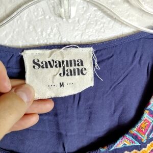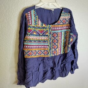 Savanna Jane Embroidered Tiered Long Sleeve Boho Blouse Sz M