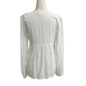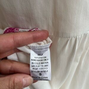Beautifully pink embroidered white top. The pink embroidery features fleur de lis and beautiful diamond shapes.