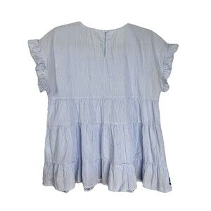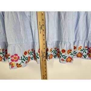 Savanna Jane Embroidered Top Womens Medium Blue Stripe Peplum Flutter Sleeve