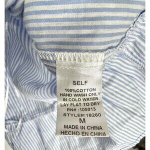Savanna Jane Embroidered Top Womens Medium Blue Stripe Peplum Flutter Sleeve. Gently used with no flaws found. Measurements in photos. Fast shipping!