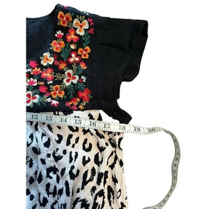Savanna Jane Floral Embroidered Blouse Size Small Leopard Flowy Short Sleeve