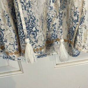 Savanna Jane | Floral Embroidered Boho Paisley Print Split Neck Blouse Small
