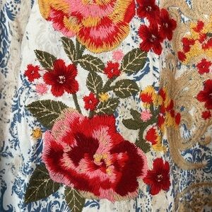Such a beautiful boho blouse. Split neck. Embroidered flowers. Colorful. In excellent condition. No flaws. Such a sweet top.