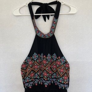 Savanna Jane Floral Embroidered Mini Dress Halter High Neck Open Back