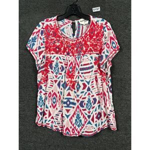 Savanna Jane Floral Embroidered Top Womens S Bohemian Festival Short Sleeves