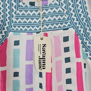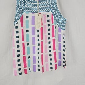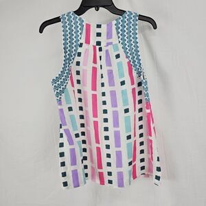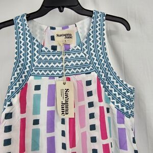 Savanna Jane Ivory Pink Teal Aztec Embroidered Print Sleeveless Top NWT Small