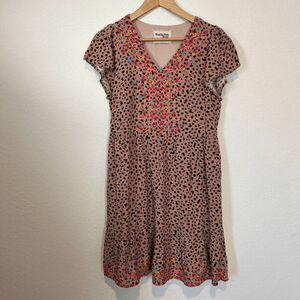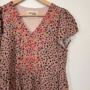 Savanna Jane Leopard Animal Print Floral Embroidered Mini Dress Size Medium