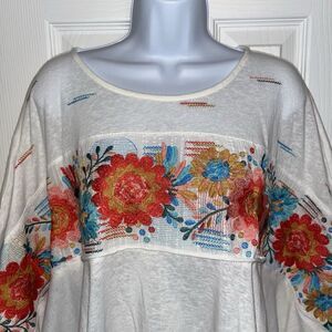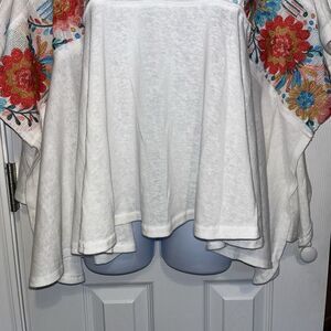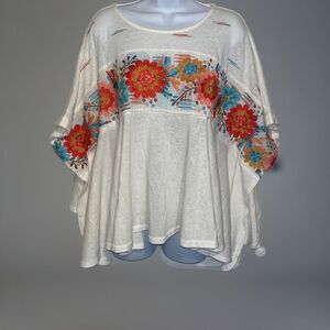 Savanna Jane (M/L) Embroidered Floral Top Poncho Style White Boho Aztec