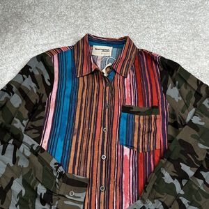 NEW Savanna Jane Multicolor Camo Sleeve Button Front Blouse/Top.