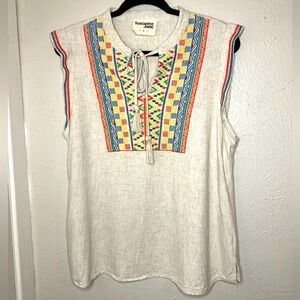 Savanna Jane embroidered top. Featuring vibrant multicolor patterns, this top adds a pop of color to any outfit.