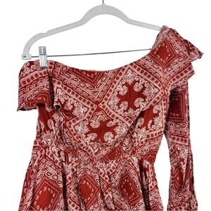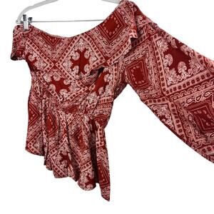 Savanna Jane New Rust Bandana Print One Shoulder Ruffle Peplum Hem Top Size Large