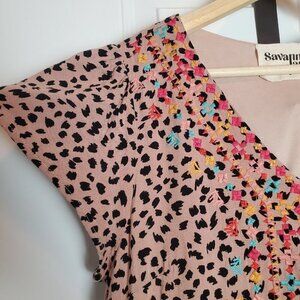 Savanna Jane Peasant Dress Women Small Pink Embroidered Leopard Print Bohemian