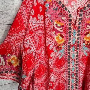 Savanna Jane Pink & Red Floral Embroidered V Neckline Tunic Top Blouse Size 1XL
